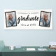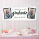 A fun way to show your pride for your graduate. Use photo banners at your events or as yard decor. This bold graduation banner features 2 photo apertures with large graduate type in centre and the name of the graduate and graduation year. Background colour is completely customizable as well as all fonts.