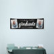 A fun way to show your pride for your graduate. Use photo banners at your events or as yard decor. This bold graduation banner features 2 photo apertures with large graduate type in centre and the name of the graduate and graduation year. Background colour is completely customizable as well as all fonts.