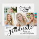 Modern photo collage graduation announcement featuring 3 photos on the front and 1 on the back with calligraphy script typography for the title GRADUATE accented with a graduation cap or mortarboard and personalized with your graduate's name and class year in black on an editable white background--select a different colour or choose from a variety of styled graphics backgrounds. The back includes details about your graduate. ASSISTANCE: For help with design modification/personalization, colour changes, transferring the design to another product or if you would like coordinating items, contact the designer BEFORE ORDERING via Zazzle Chat or makeitaboutyoustore@gmail.com.