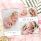 Modern Elegant Calligraphy Script 4 Photo Collage Baby Girl Thank You Card. Features a beautiful handwritten calligraphy thank you swash tail font script and your personal message. Easy to personalize with your baby photos and details.