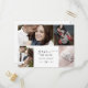 This modern script 4 photo template save the date postcard is perfect for a minimalist wedding. The simple black and white design features unique industrial lettering typography with modern boho style. Customizable in any colour. Keep the design minimal and elegant, as is, or personalize it by adding your own graphics and artwork.