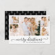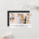 Elegant Calligraphy Script 5 Photo Collage Christmas Cards. This festive, minimalist, five (5) photo holiday greeting card features a nice grid photo collage and says „Merry Christmas”! The „Merry Christmas” greeting text is written in a beautiful hand lettered swirly swash-tail font type Black and White. On the reverse side hand drawn pine tree doodle pattern. Pretty greeting card for your family and friends in Winter Holiday season.