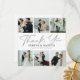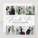 Experience the ultimate combination of simplicity and sophistication with these Minimalist chic wedding thank you cards. Each card is thoughtfully designed; featuring a six-photo collage of the newlyweds, the classic elegance of 'thank you' in script, personal details to commemorate the special day, and a personalized note of gratitude on the reverse. This isn't merely a thank you card; it's a token of appreciation that tells your love story.