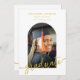 Celebrate your daughter’s high school, college, or university graduation with this chic and trendy gold script arch photo announcement card. Showcasing a modern arch design paired with sophisticated gold calligraphy, this personalized invitation is the ideal way to share her monumental achievement with friends and family. The casual yet elegant layout offers space for a beloved senior portrait or graduation photo, along with customizable event details in striking typography. Perfect for graduation parties, open houses, or formal announcements, this easy-to-edit photo card can be personalized quickly with the user-friendly template. Designed by artist Catherine Sweetman, this graceful arch invitation blends modern style with timeless appeal, making it a stunning keepsake to commemorate your daughter’s proud moment. Perfect for 2025 graduation announcements, senior photo cards, and custom graduation party invitations.