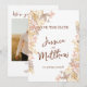 This modern "Save the Date" card features hand-drawn autumn foliage in warm colours, paired with a contemporary script and serif typography. The back of the card provides space for a photo of the couple and additional information. This timeless design works well with a range of styles, from classic to rustic. Consider pairing it with coordinating items for a cohesive look.
