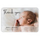 Personalized this magnetic card with baby's photo, birth stats, parents' names and special message. This design uses an elegant hand-drawn script font for a touch of sophistication for the words "thank you". Express your excitement in announcing the birth of your child and send your gratitude at the same time. White transparency overlay allows you to add text without losing readability, please contact me if you need any assistance with this design.