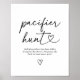 Invite baby shower guests to participate in a pacifier hunt with this simple and elegant table sign, featuring a modern script with heart flourish.