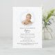 Modern baby photo Baptism and Christening invitation featuring a cross with modern typography. Add your baby's photo and Baptism details by clicking the "Personalize" button.