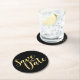 Modern Script Black and Gold Wedding Save the Date Round Paper Coaster