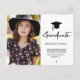 Trendy chic black typography script and graduation hat making a stylish graduation party invitation announcement postcard. ++++++++++ Easy to personalize with your photo and details on both sides!