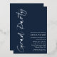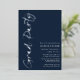This is a minimalist and modern graduation party invitation. It is a simple and stylish handwritten script design in classic blue and white with "Grad Party" in silver foil. Please contact the designer for any queries about this design.