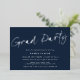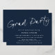 This is a minimalist and simple graduation party invitation. It uses a modern handwritten script design in classic blue and white with "Grad Party" in stylish silver foil. Please contact the designer for any queries about this design.