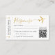 Elegant script black and gold airplane ticket boarding pass MINI RSVP Response Card with QR code, a perfect addition to a destination wedding or aviation travel theme reception invitation for the globetrotter couple having a wedding abroad.