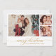 Modern Elegant Script Winter Botanical 3 Photo Collage Christmas Cards. This festive minimalist multi photo christmas cards features pretty three (3) grid photo collage, a „Merry Christmas” greeting text which is written in a hand lettered calligraphy or typography swash tail font type in gold and white. On the reverse side watercolor winter botanical greenery foliage, berries, eucalyptus leaves, pine needles and branches. This festive Custom Photo Christmas Cards are a great way to remind loved ones that you're thinking of them this Winter Holiday Season.