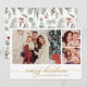 Modern Script Botanical 3 Photo Collage Christmas Holiday Card