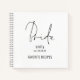 Modern Script Bride Name Date Recipe. Ideal for the bride’s gift box.. Bride is in a stylish set script and easily personalise the rest of the text Black and white. Can be changed to different colour via edit further.
