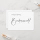 This minimalistic script Bridesmaid Proposal card is the perfect way to celebrate your bridal shower in style. Features elegant and modern typography. You can personalize this design by clicking on "Personalize this template" or if you wish to change the font, background colours or arrange the design elements in a different way you can click on "Edit using Design Tool".