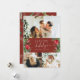 Modern Script Burgundy Red Winter Foliage Photo Holiday Card