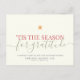 Modern custom business holiday postcard with elegant script calligraphy reading 'TIS THE SEASON FOR GRATITUDE in pastel red and green Christmas colours. Below is space for your custom message as well as additional space on the back over your corporate logo. Perfect simple corporate holiday card with a contemporary, trendy typography design under a watercolor orange star.