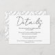 Modern script calligraphy black and white wedding enclosure card. An elegant minimal black and white wedding design with the word "Details" in script calligraly. The back includes a black and white pattern of your names. Please note that if your names on the back take more or less space customize it to increase or decrease the text size accordingly.