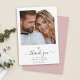This modern chic gold heart thank you note features hand-lettered script calligraphy alongside your names in elegant serif typography under your favorite wedding photo. This is the blush pink and white version.