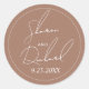 Modern script calligraphy mocha minimalist wedding classic round sticker