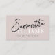 Modern script calligraphy name elegant feminine business card ideal for event planners, hair stylists, make up artists, bloggers and other professionals. Easy to edit font style and background colours.