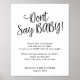This cute baby shower game sign features a script heading and your custom text. Use the template form to add your personalization. The background colour can be changed by choosing "customize further" at the bottom of the template. How to Play: Hang the poster at your shower. When the guests arrive, give them a clothespin and remind them not to say "BABY" or they will lose their pin! It's so easy, anyone can play. Give a prize to the guest who collects the most clothespins at the end of the shower.