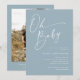 Modern Script Dusty Blue Photo Baby Shower Invitation