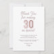 Modern Script Dusty Lilac Rose Gold 30th Birthday Thank You Card. Featuring a white background that can be changed to any colour, '30' in bold sans-serif font with faux rose gold foil inline along with a custom message below.