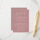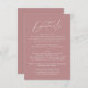 Simple and elegant wedding details card featuring a handwritten white script mixed with modern lettering against a dusty rose background. Personalize the minimalist wedding details card with your wedding details such as reception information, hotel accommodations, wedding website, etc. The chic dusty rose wedding details card is perfect for modern weddings.