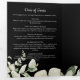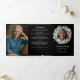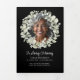 Elegant floral memorial service programs with a black background and soft greenery accents provide a timeless and heartfelt way to celebrate the life of a loved one. The front cover features a beautiful photo tribute framed by a delicate wreath of watercolor eucalyptus, paired with the words “In Loving Memory” along with your loved one's name, dates of life, and a meaningful sentiment. Inside, the program includes customizable sections for the order of service, an obituary, a poem, quote or scripture, offering families a dignified way to honour memories while guiding attendees through the ceremony. The layout also allows space for acknowledgments and expressions of gratitude, making it a thoughtful keepsake for guests. The combination of elegant typography, dark background, and soft watercolor greenery creates a refined design that balances reverence with warmth. Perfect for funerals, memorials, and celebrations of life, these programs not only serve a practical role but also become a lasting remembrance for family and friends to cherish.
