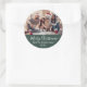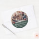 Modern Script Family Photo Green Merry Christmas Classic Round Sticker