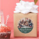 Elegant Modern "Merry Christmas" Calligraphy Script Family Photo Green Holiday Large Round Sticker. Great for Mailing Accessories Envelope Seals and Gift Stickers.