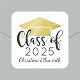Custom graduation stickers feature a modern and elegant personalized design with the graduate's name, their class year in trendy black calligraphy script, and a gold colored grad cap motif. Use to accent announcement card envelopes or graduation party favors!