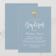 Modern Script Gold Cross Dusty Blue Boy Baptism Invitation