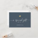 A special gift for you! This modern chic gold heart gift certificate note card for your customers features hand-lettered script calligraphy alongside your names in elegant serif typography. This is the elegant dusty navy blue version.
