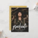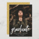 Invite guests to celebrate the grad with trendy photo graduation party invitations. The graduation party invites display the graduate's vertical photo with "graduate" in white script lettering. Personalize the front of the invite by adding the graduate's name, school name, and graduation year. The invite reverses to display your graduation party details in gold lettering with a background of white and gold sprinkles.
