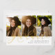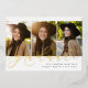 A playful but simple script graduate in foil sits at the bottom of 3 vertical photos. The custom text includes room for the graduate's name and also school and year details. The neutral black backer has a simple grid pattern, and the colour can be changed by clicking "customize further." The centre has room for graduation party invitation text or it can be left blank. Announce your graduate's accomplishment to friends and family with this design!