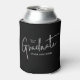 A Modern Script Graduate Simple Graduation Can Cooler with handwritten font, name and graduation details. Click the personalize/edit with design tool button to customize this design.
