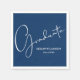 Paper napkins feature the word GRAD along with your graduate's name and class year in chic white lettering on dark blue or any of our done-for-you school colours.