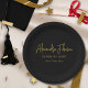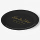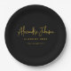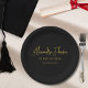 Celebrate your graduate in style with this modern trendy script graduation party paper plates featuring a sleek black background and elegant, stylish gold script. The minimalist design is perfect for a chic and contemporary graduation celebration. Personalize easily using our custom templates, add your graduate’s name, high school or college, and class year in seconds. Ideal for graduation parties, open houses, and memorable events.