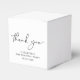 Modern graduation party favour box featuring "Thank You" in a chic script and the grad's name and party date in simple typography.