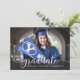 This lovely, elegant graduation party announcement features a photo of the college or high school graduate on the front of the card, with a pretty calligraphy script font, which overlays your photo of the graduate. You can adjust the wording on the back of the card to make this either a simple graduation announcement, or a grad party invitation. A stylish, classy and simple graduation design! Designed for you by Blackberry Boulevard.