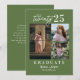 Modern Script Green 3 Photo Collage Graduation Announcement
