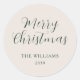 Modern Script Green Beige Merry Christmas Custom Classic Round Sticker