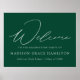 Elegant graduation sign featuring "Welcome" in a white modern calligraphy script with a green background (or color of your choice). Personalize the modern graduation poster by adding the graduate's name, school name, and graduation year. The green graduation sign is perfect for both high school and college graduates.
