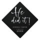 Modern Script He Did It Name 2025 Black and White Graduation Cap Topper
