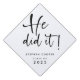 Modern Script He Did It Name 2025 Graduation. Simple black and white style, with He Did It in an informal modern script and easily personalise with your grad's name and year. Text and background can be changed to another colour if you wish.