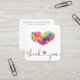 say big thank you and show your love and customer appreciation with this modern script card with the unique colourful heart, inviting them to purchase again, leave a review and tag you on social media. You can change the colours of the heart, text and icons to fit your branding